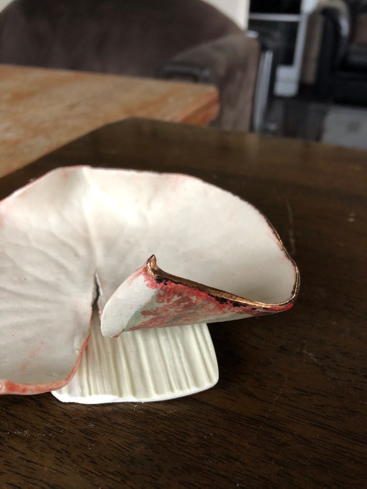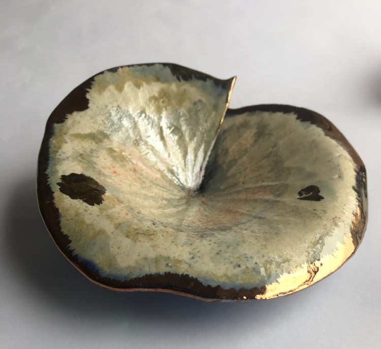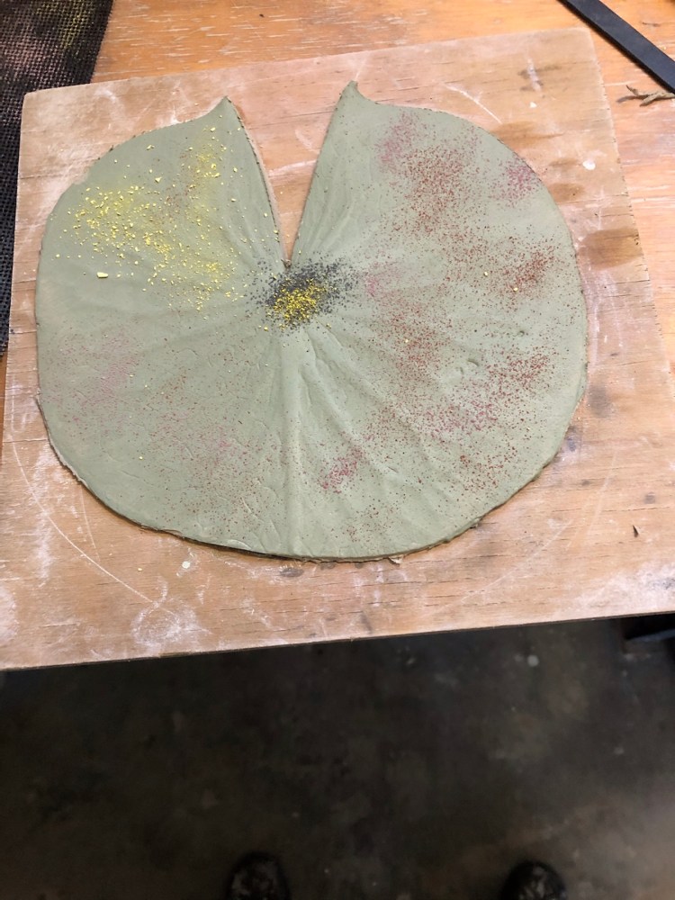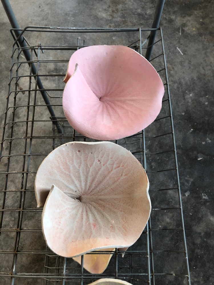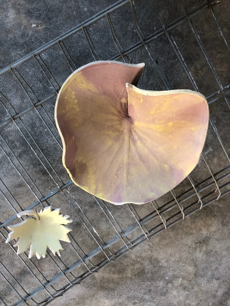 The lily leaves coming out of the kilns bit by bit , some lustred , another five to come …