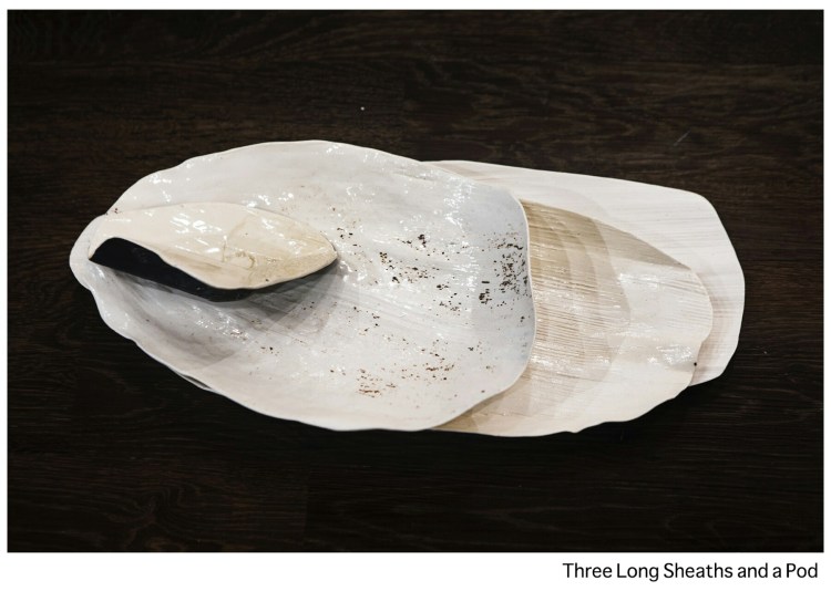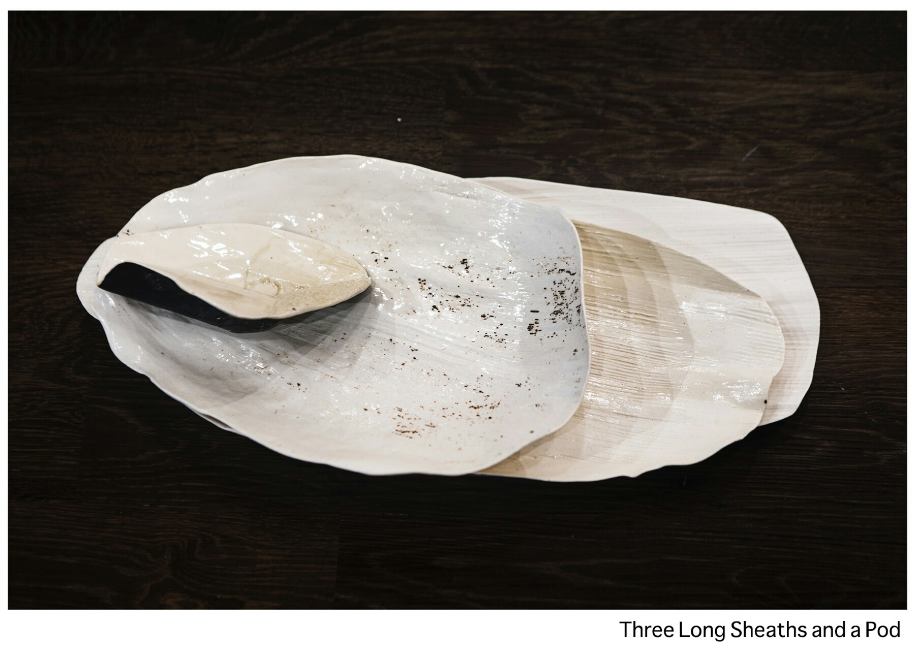 - imprints and castings of seed pods, in clay, glazed and unglazed porcelain.